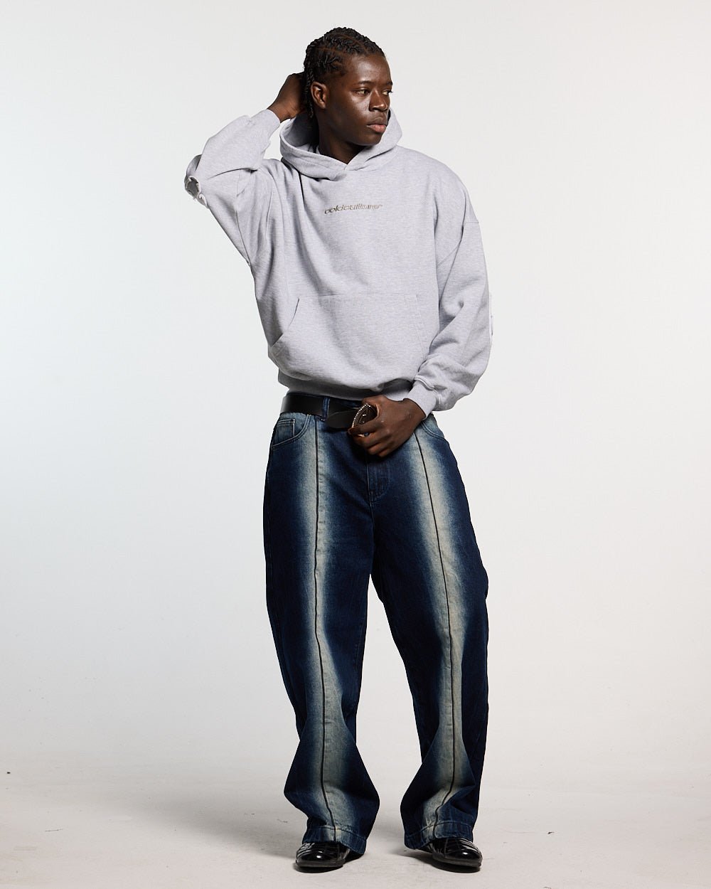 DISTRESS CURVED HOODIE LIGHT GREY