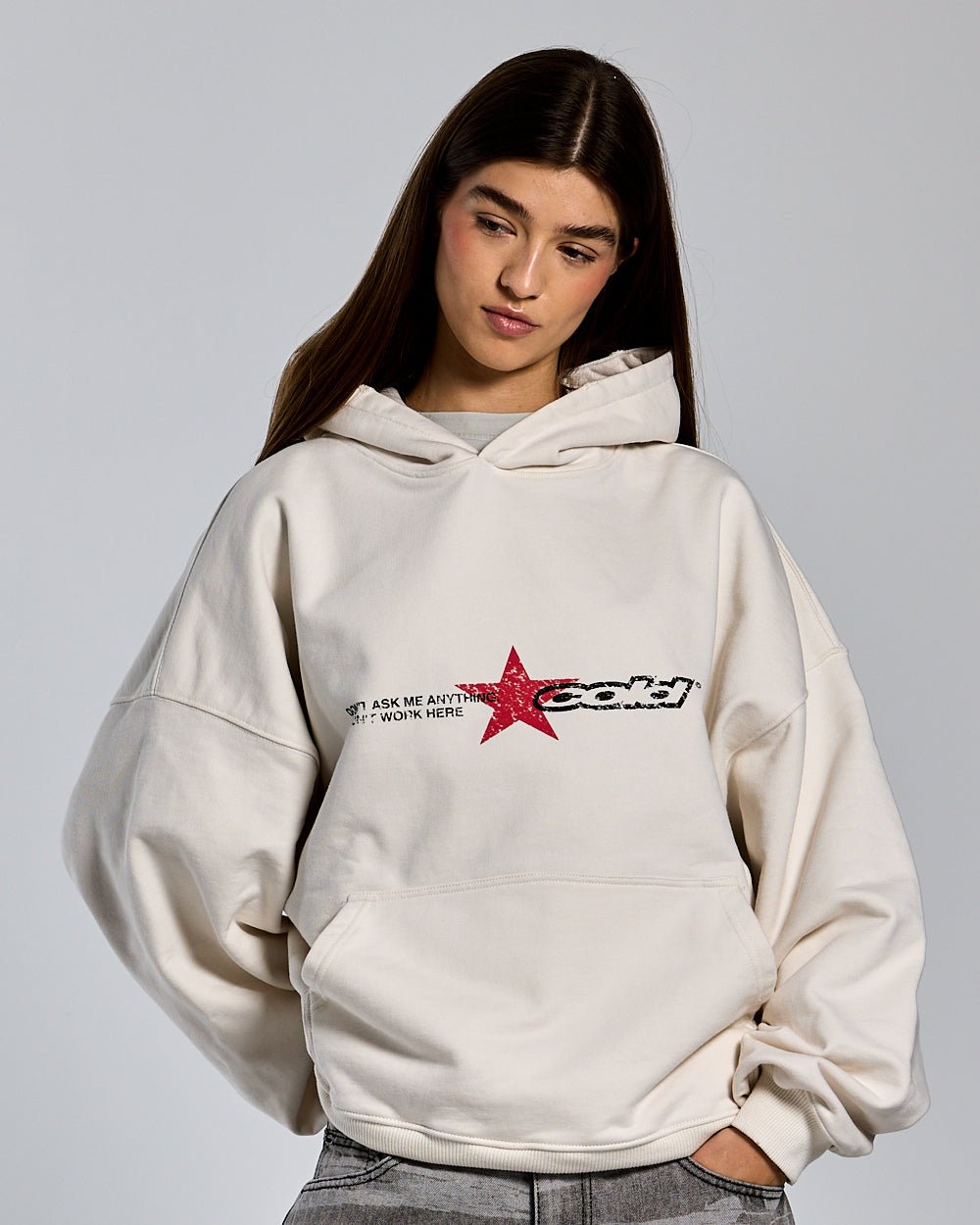 DONT WORK HOODIE +WASHED IVORY WHITE