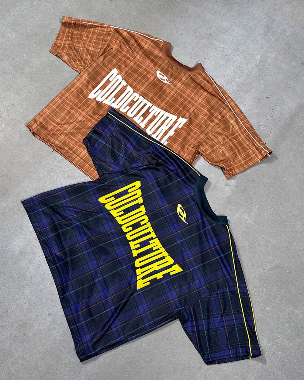 Dark blue color plaid with yellow details.