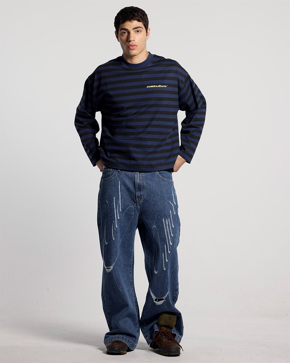 Longsleeve tee.100% cotton.Black & blue stripes.Serigraphy contrasting logo on the front and back.Cold Culture label included.