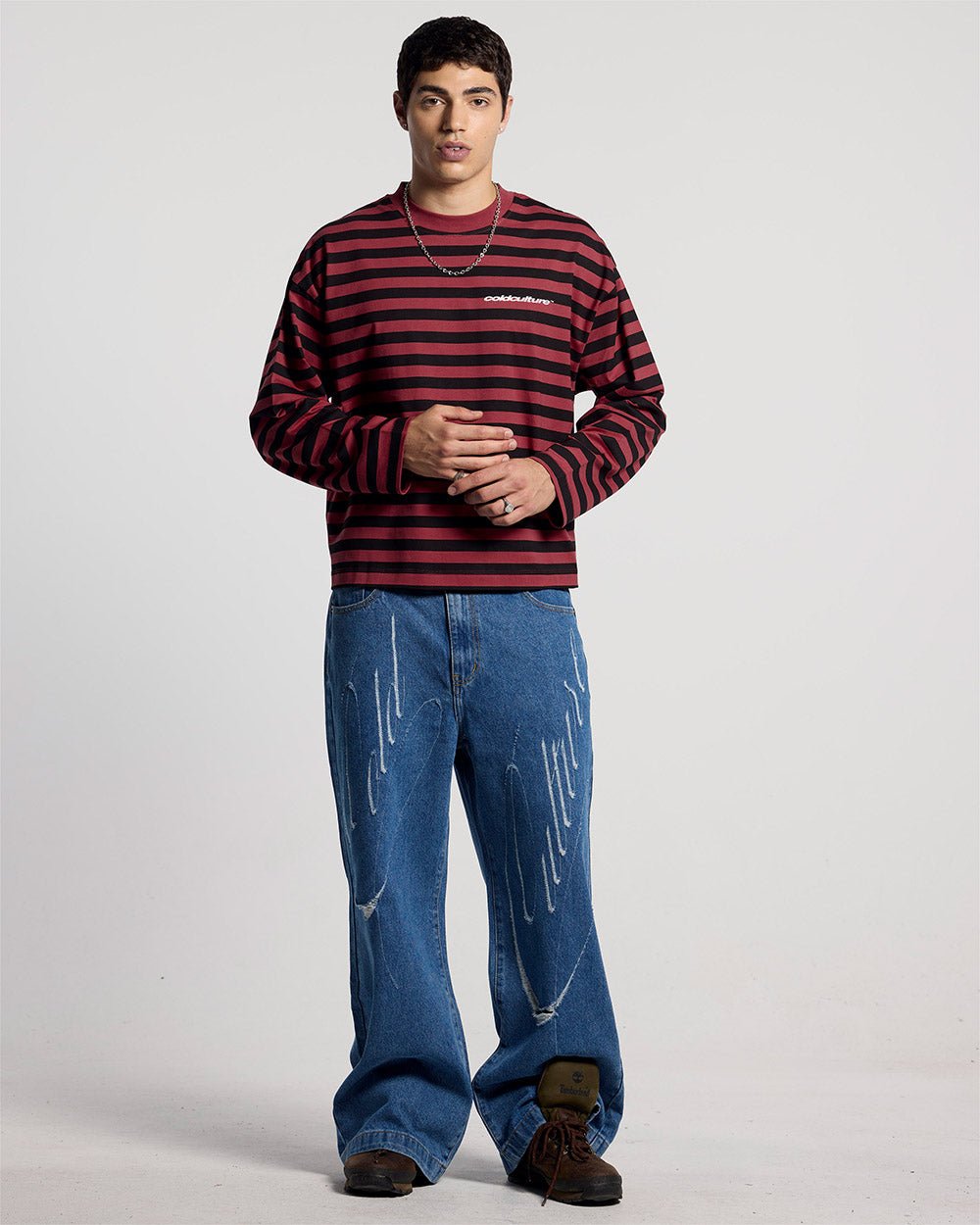 Longsleeve tee.100% cotton.Black & red stripes.Serigraphy contrasting logo on the front and back.Cold Culture label included.