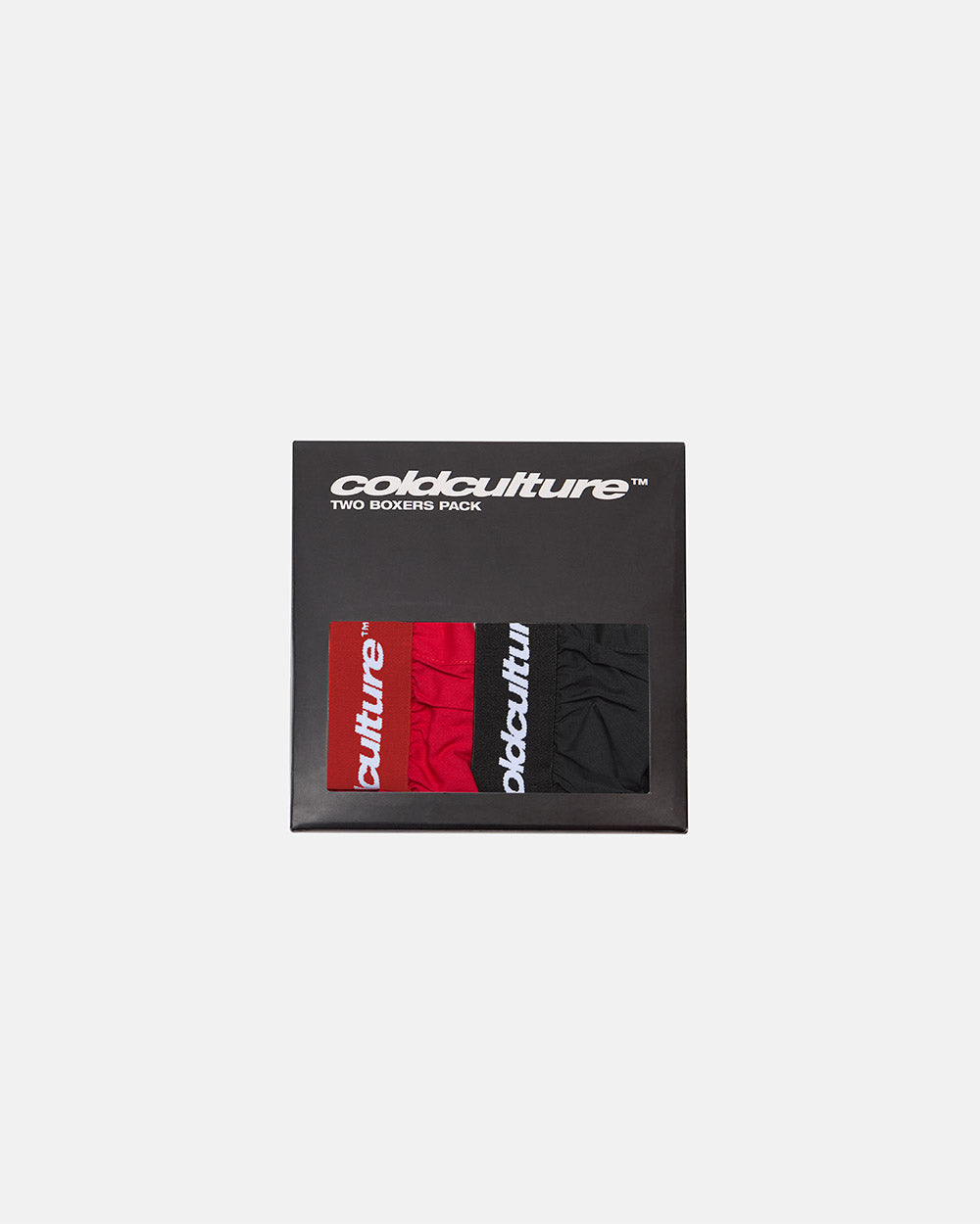 Boxer fit,Black and red color,100% cotton,Logo screen printed all over de garment,Elastic band with logo,
